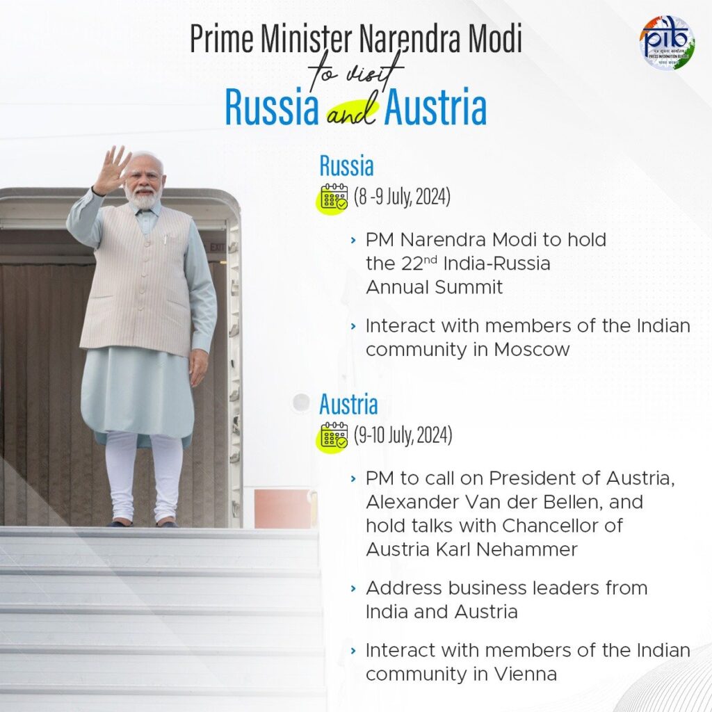दिल्ली- PM मोदी तीन दिवसीय विदेश दौरे पर रवाना, शाम सवा पाँच बजे मॉस्को...